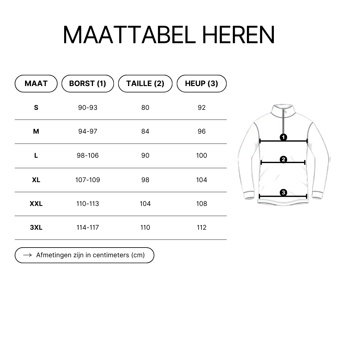 Onze heren skipullies hebben een comfortabele, iets ruimere fit. Twijfel je tussen twee maten? Kies dan gerust de kleinere maat.